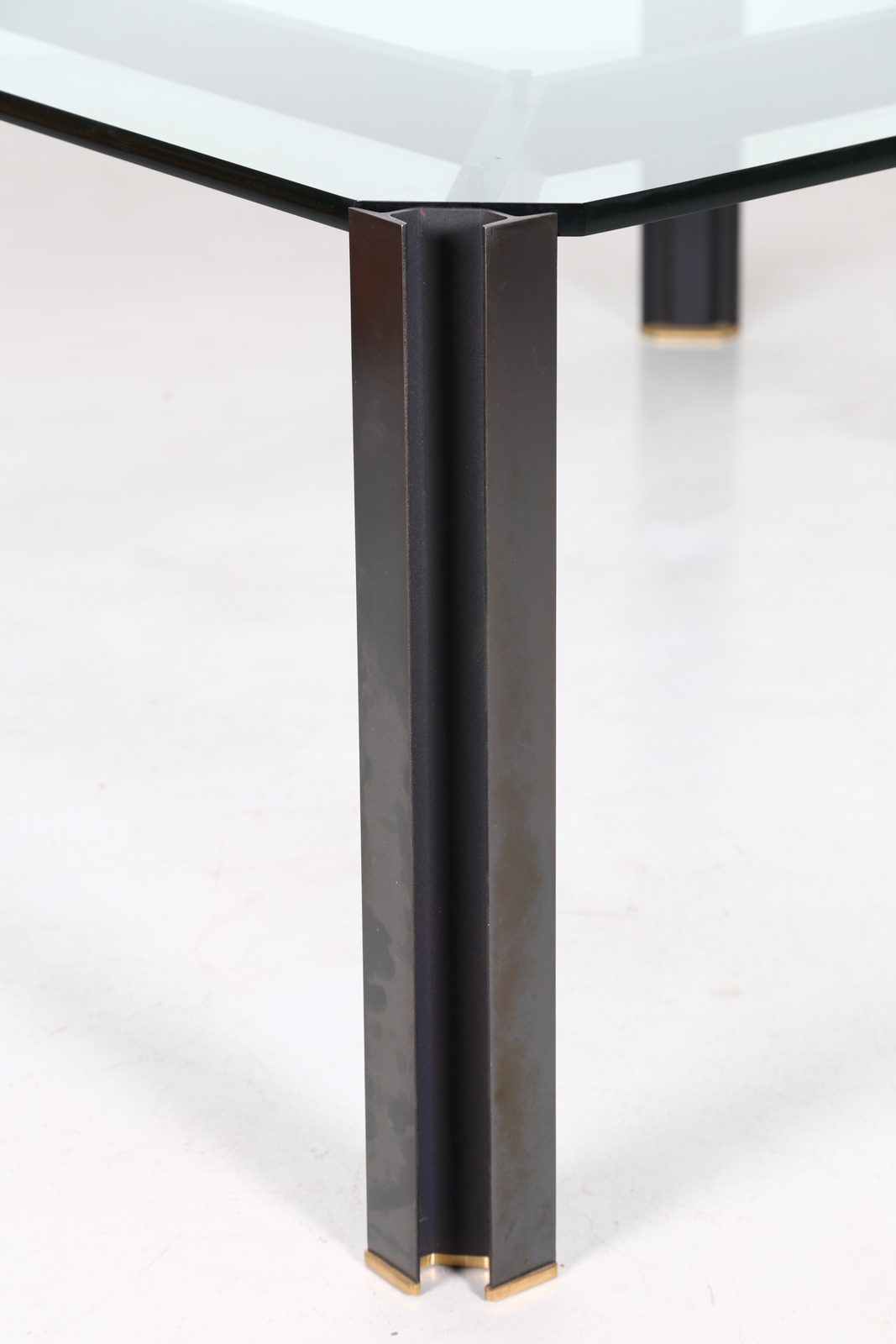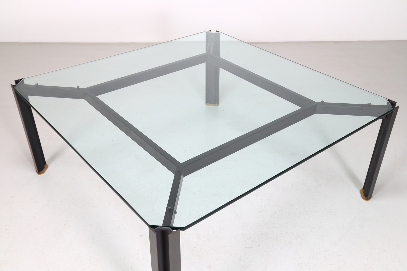 MANIFATTURA ITALIANA Tavolo. Metallo e vetro. Cm 159,00 x 66,00 x 159,00. Cristallo e metallo, dettagli in ottone.