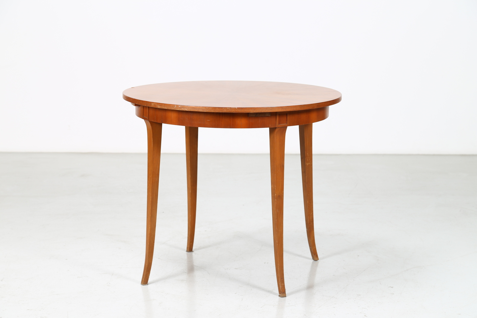 ITALIAN MANUFACTURE Game table. Walnut. Cm 90,00 x 77,00 x 90,00. Walnut and brass, 50s.