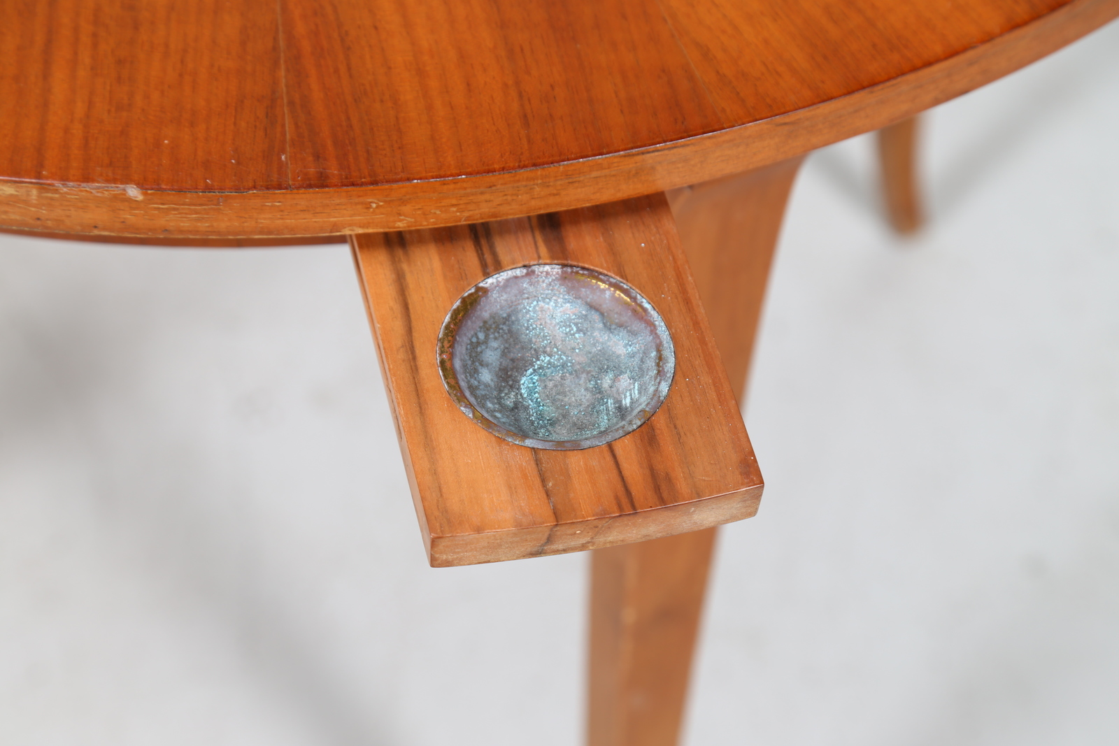 MANIFATTURA ITALIANA Tavolo da gioco. Legno di noce. Cm 90,00 x 77,00 x 90,00. Legno di noce e ottone, anni 50.