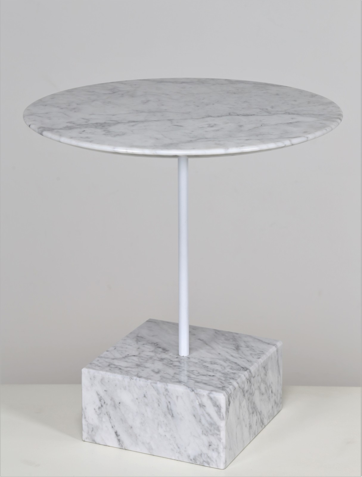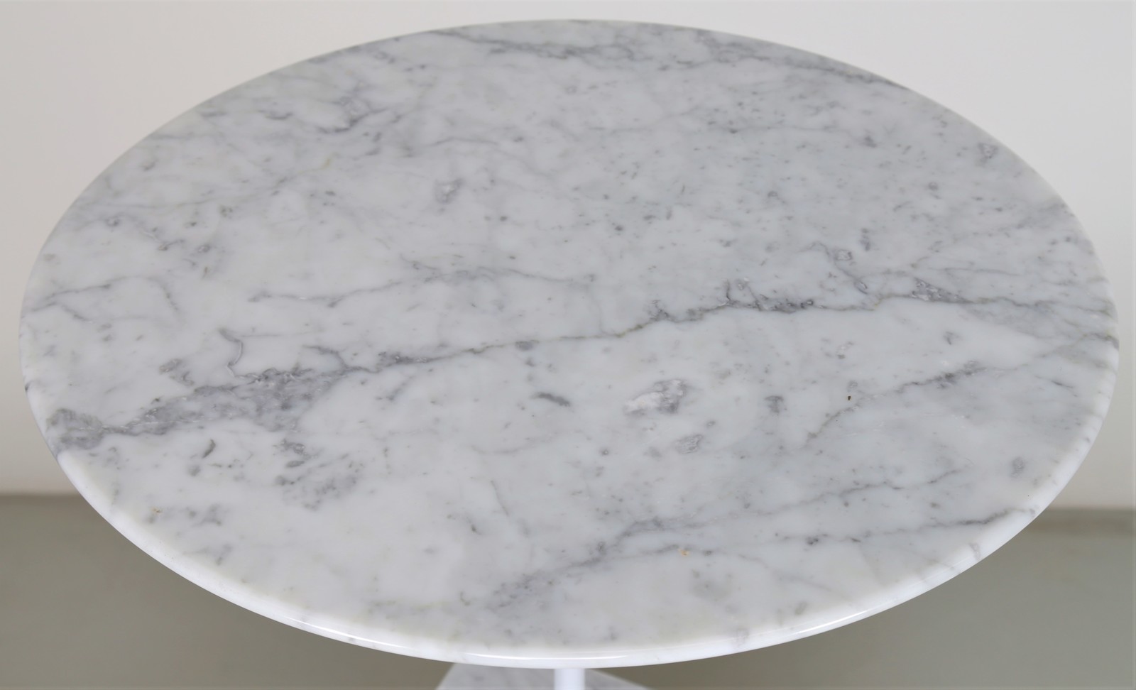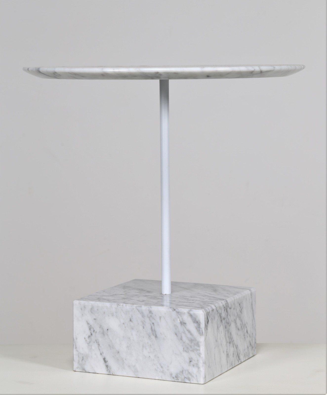SOTTSASS ETTORE (1917 - 2007) Tavolino tondo mod Primavera. Metallo e marmo. Cm 50,50 x 54,00 x 50,50. Marmo e metallo laccato. prodotto da Ultima Edizione, 1990.