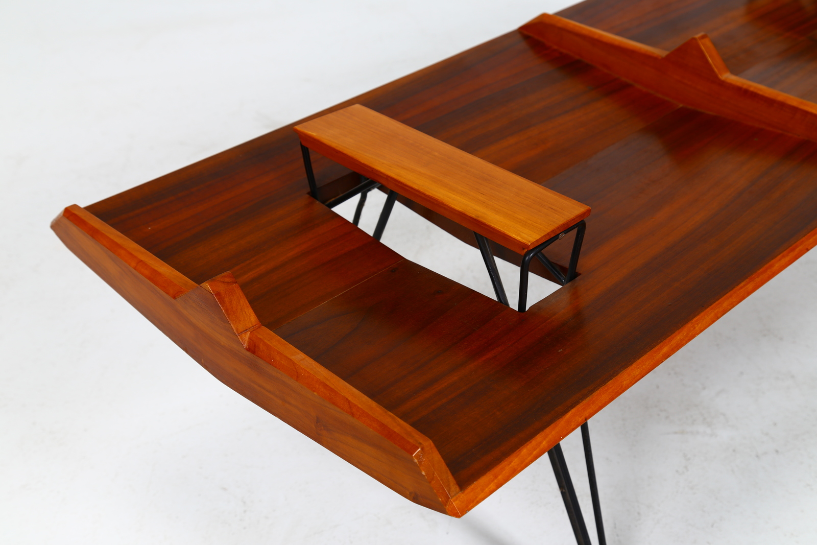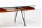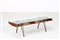 LE OPERE E I GIORNI Tavolino. Vetro, metallo e legno. Cm 130,00 x 37,50 x 47,00. Legno di noce, metallo e vetro.