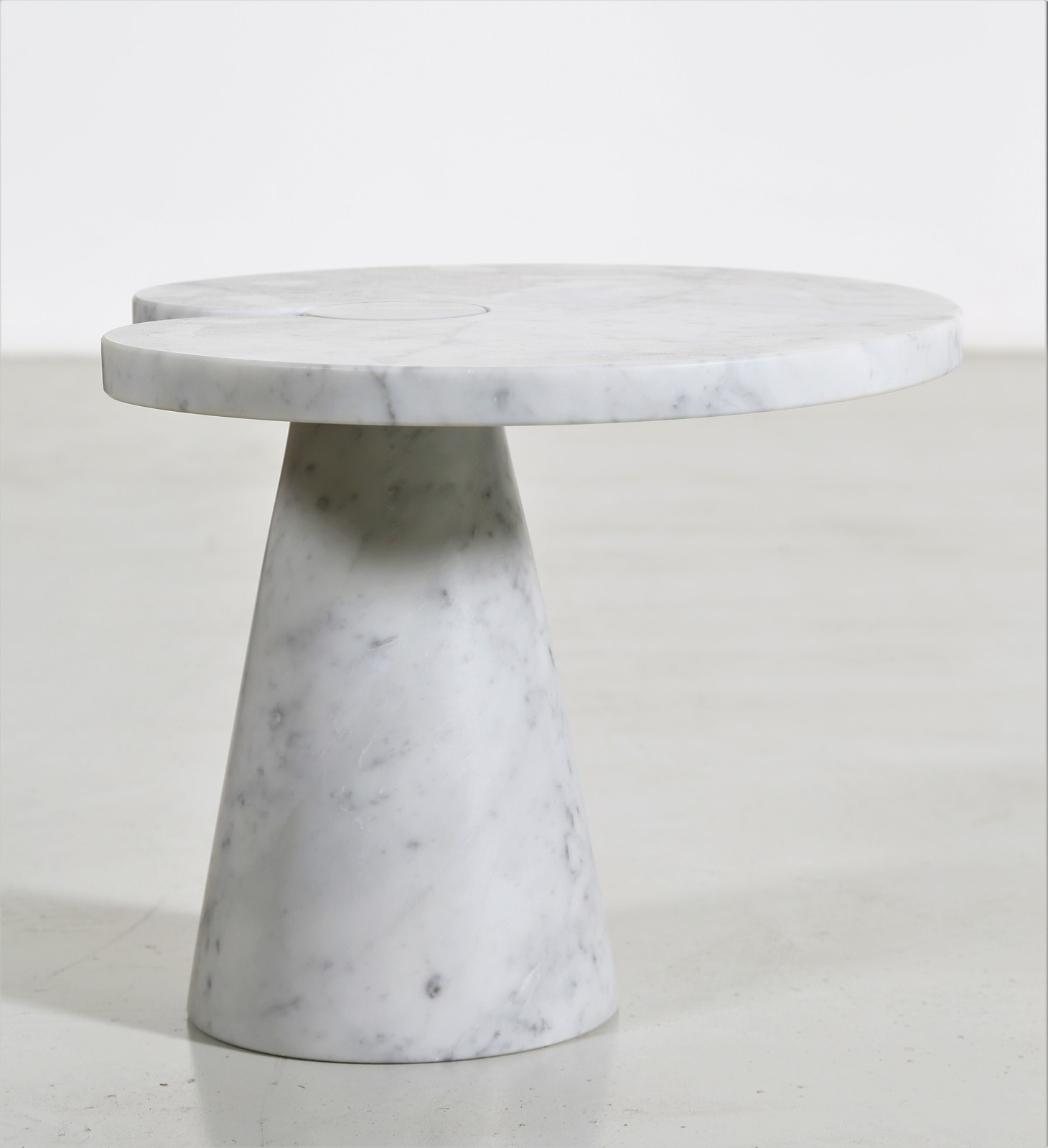 MANGIAROTTI ANGELO (n. 1921) Tavolino mod. Eros. Marmo bianco di Carrara. Cm...