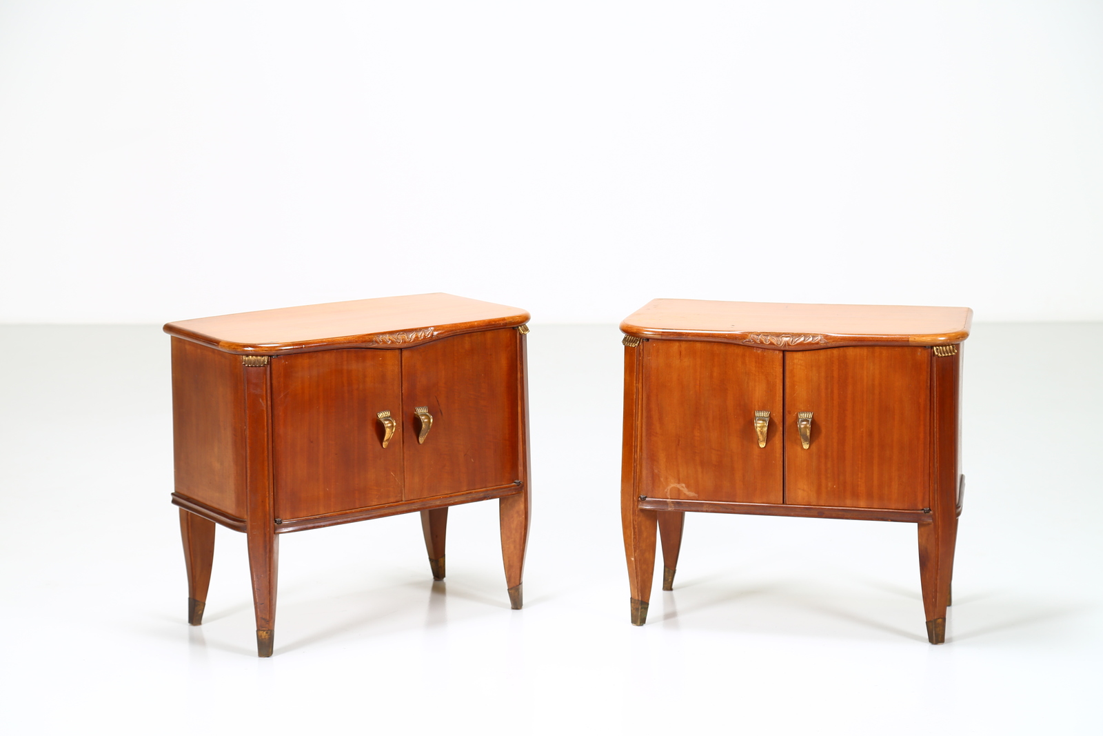 BUZZI TOMASO (1900 - 1981) Pair of bedside tables. Wood and brass. Cm 62,00 x 56,00 x 35,00. Wood and bress, 40s.