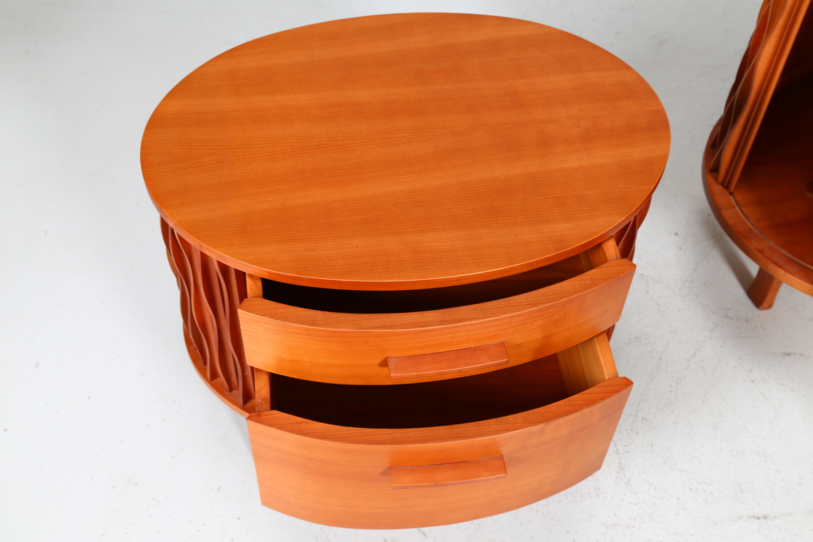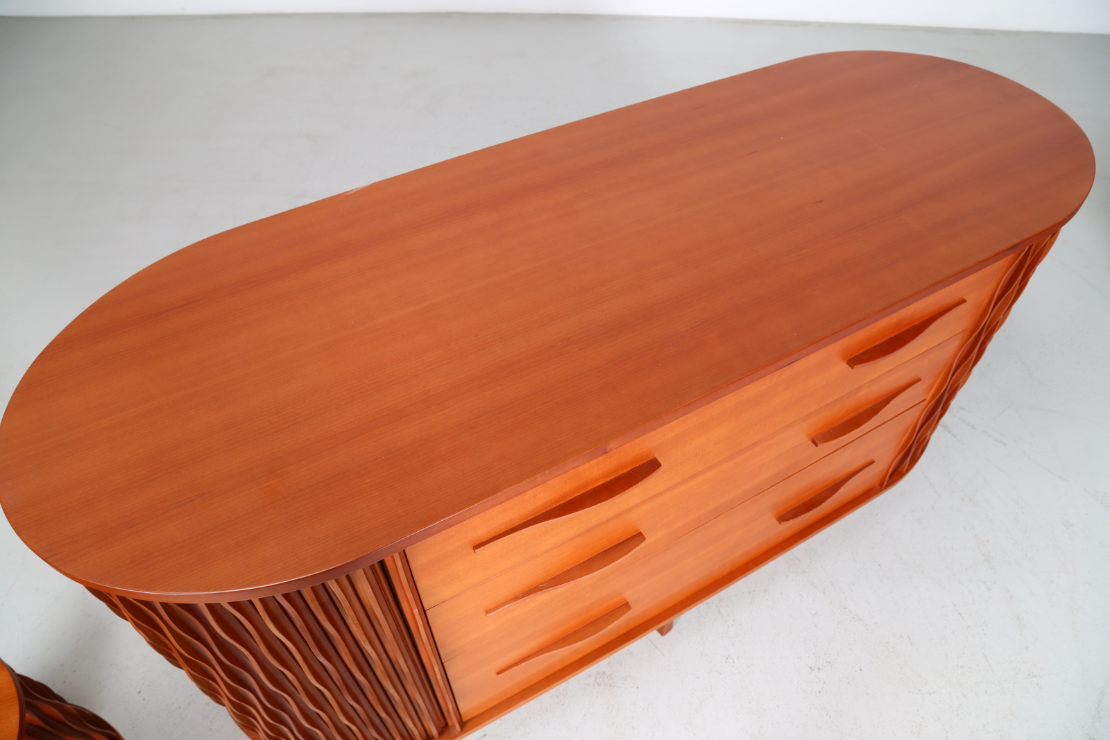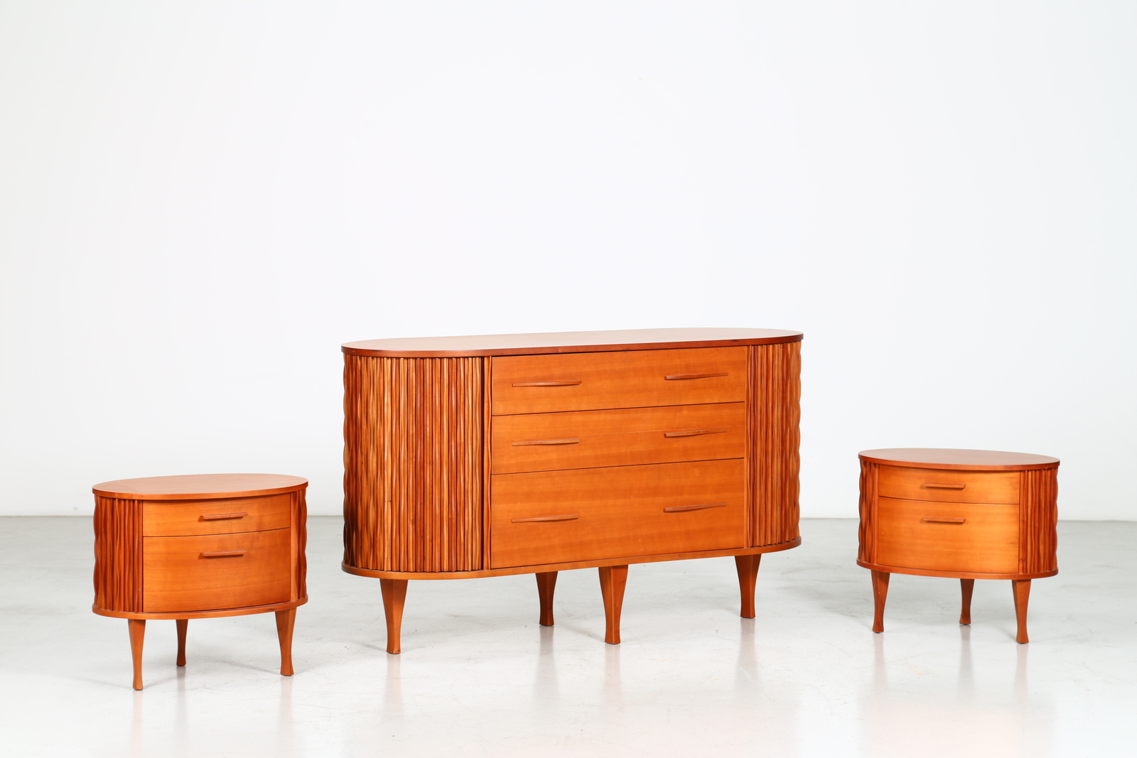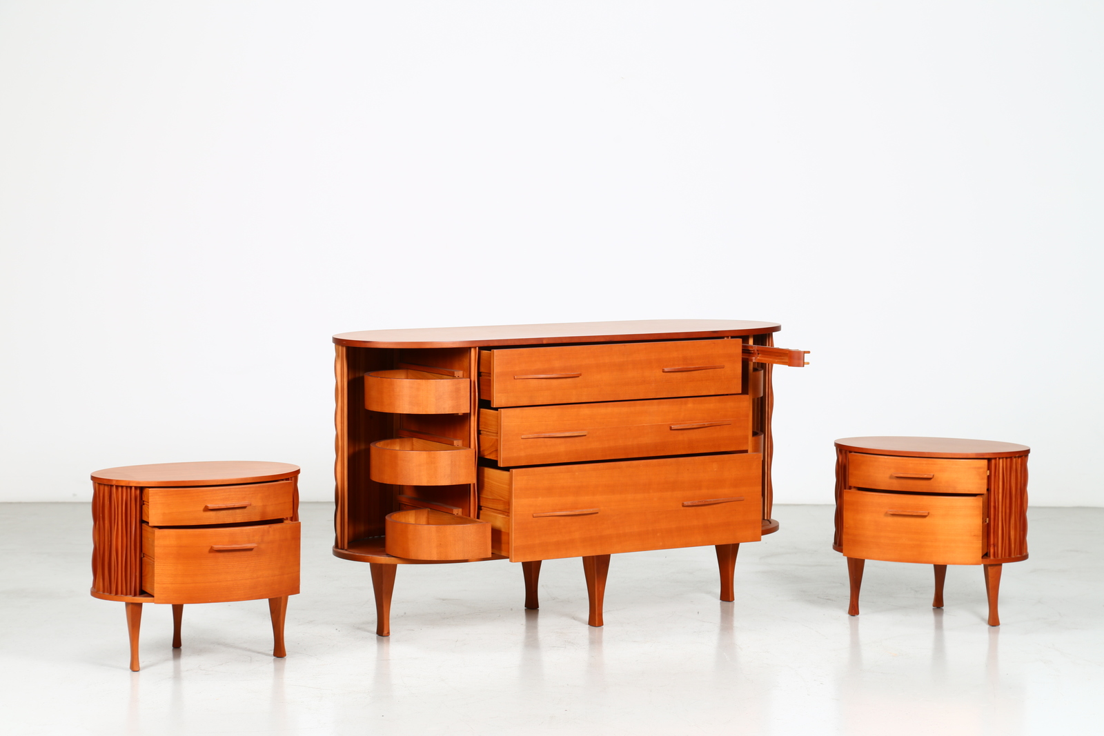 ITALIAN MANUFACTURE Chest of drawers and two bedside tables. Cherry. Cm 150,00 x 87,00 x 50,00. Cherry wood.