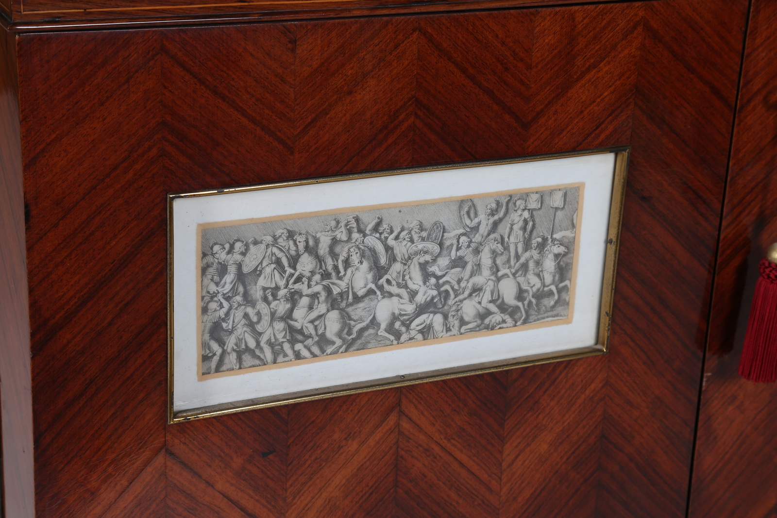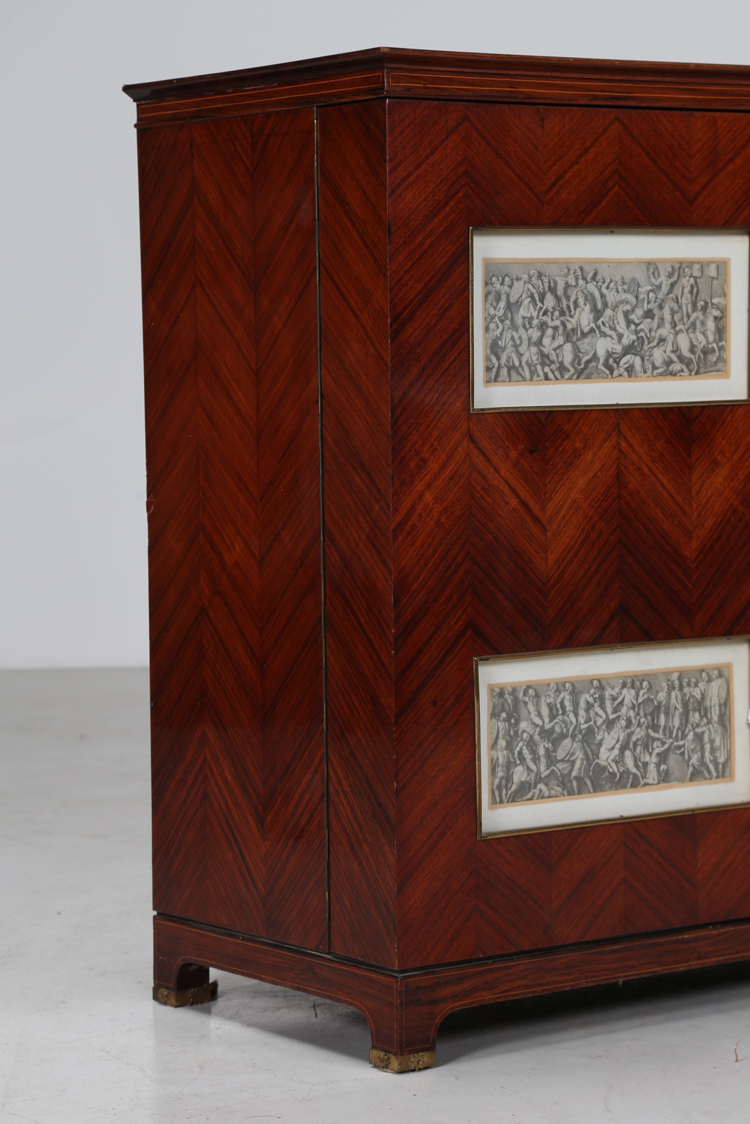 . Rosewood. Cm 122,00 x 100,00 x 46,00. Rosewood with brass details, doors with decorated prints, 40s.