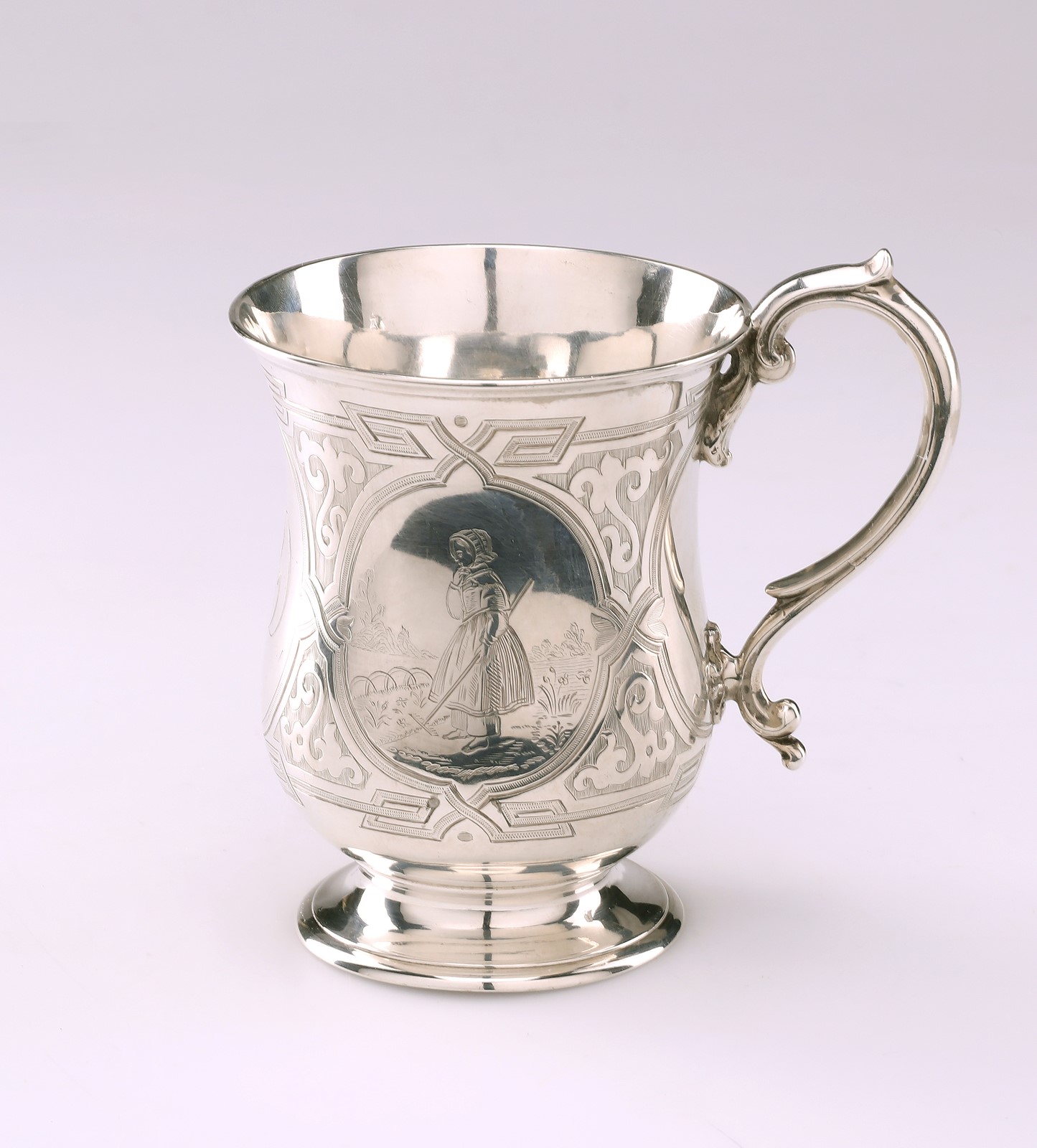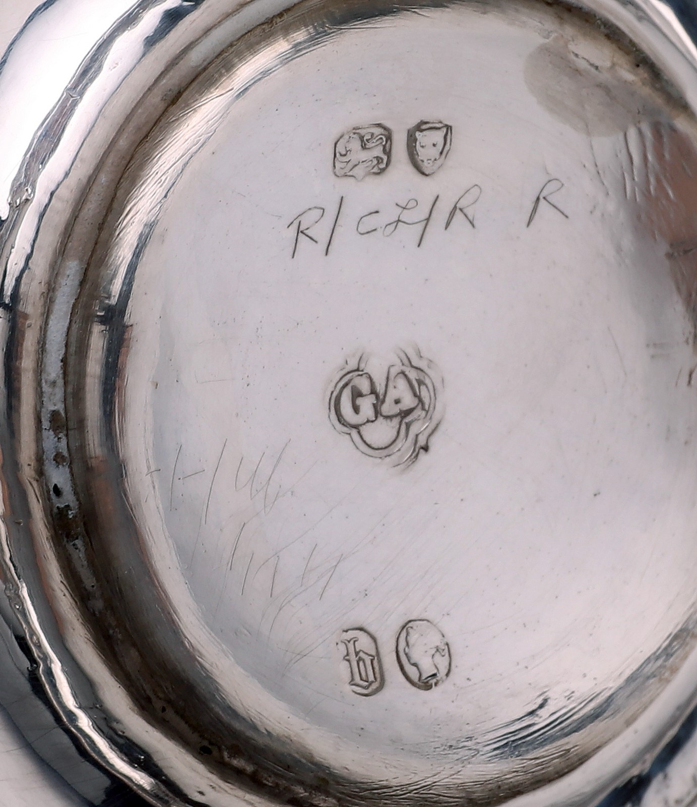 MANIFATTURA INGLESE DEL XIX SECOLO Lattiera in argento cesellato e sbalzato....
