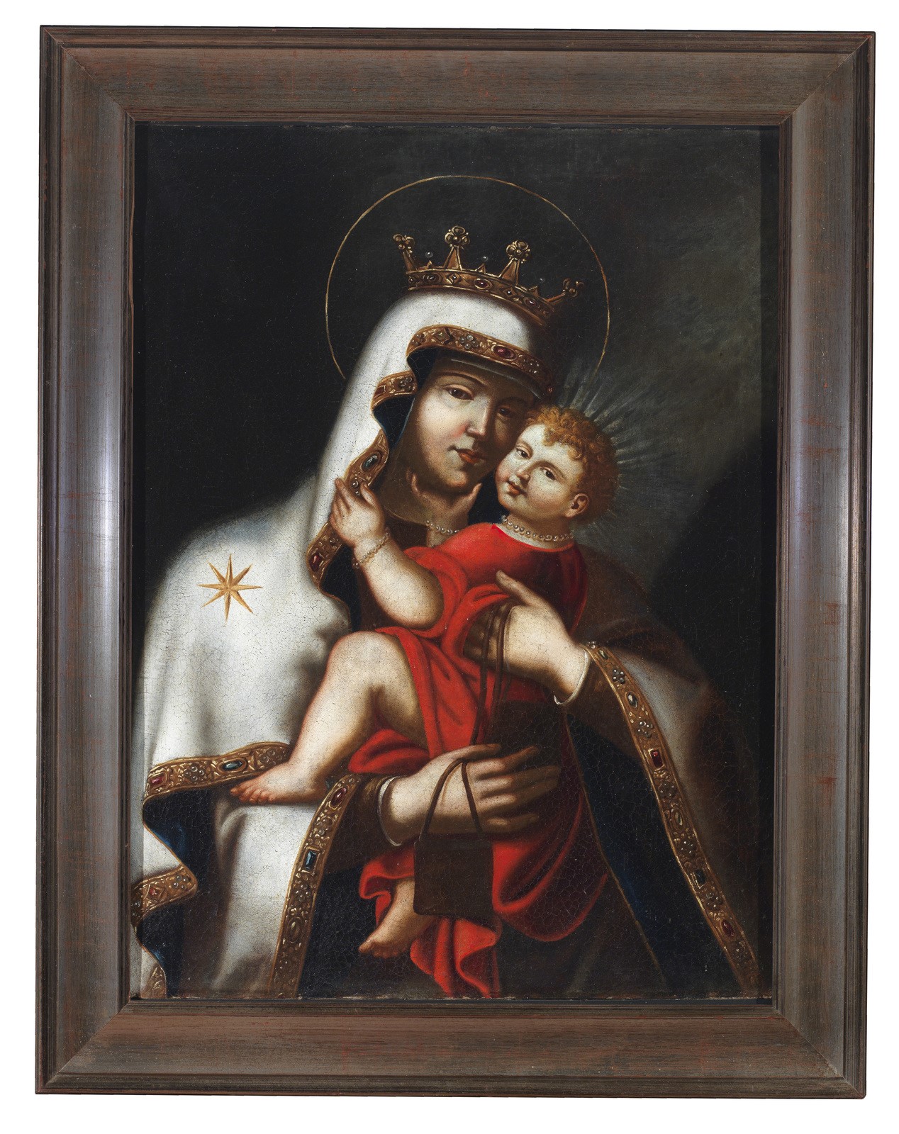 ARTISTA DEL XVII SECOLO Madonna del Carmine. Olio su tela . Cm 57,00 x 74,00....