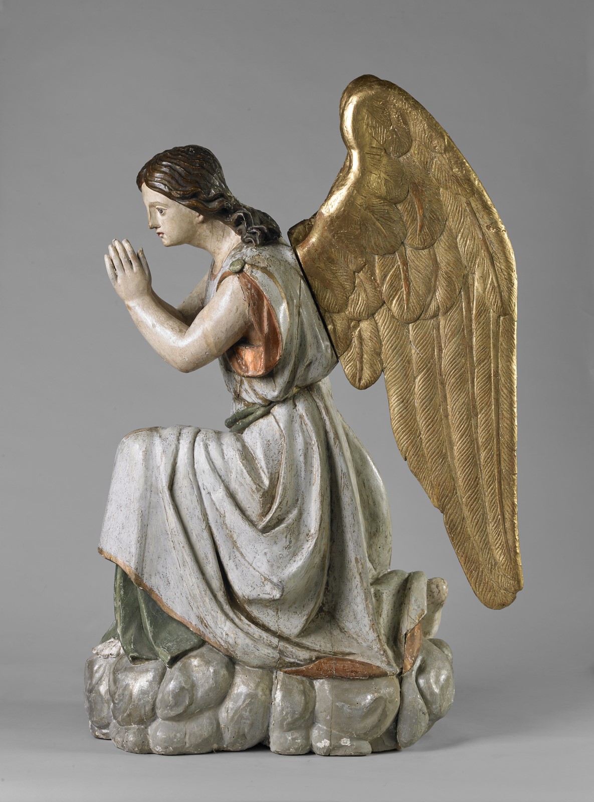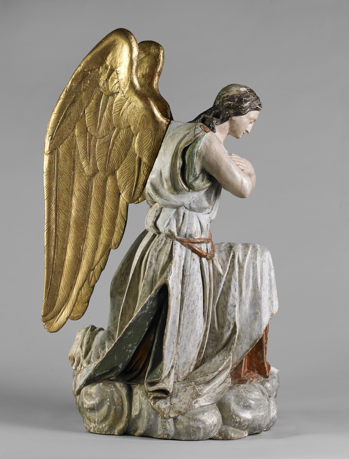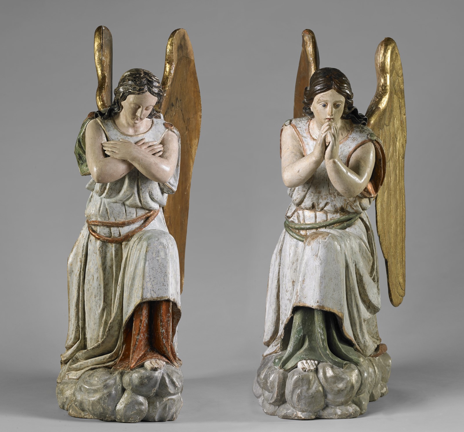 17th CENTURY MANUFACTURE A pair of angels in carved and depicted wood. . Cm 47,00 x 88,00 x 35,00.