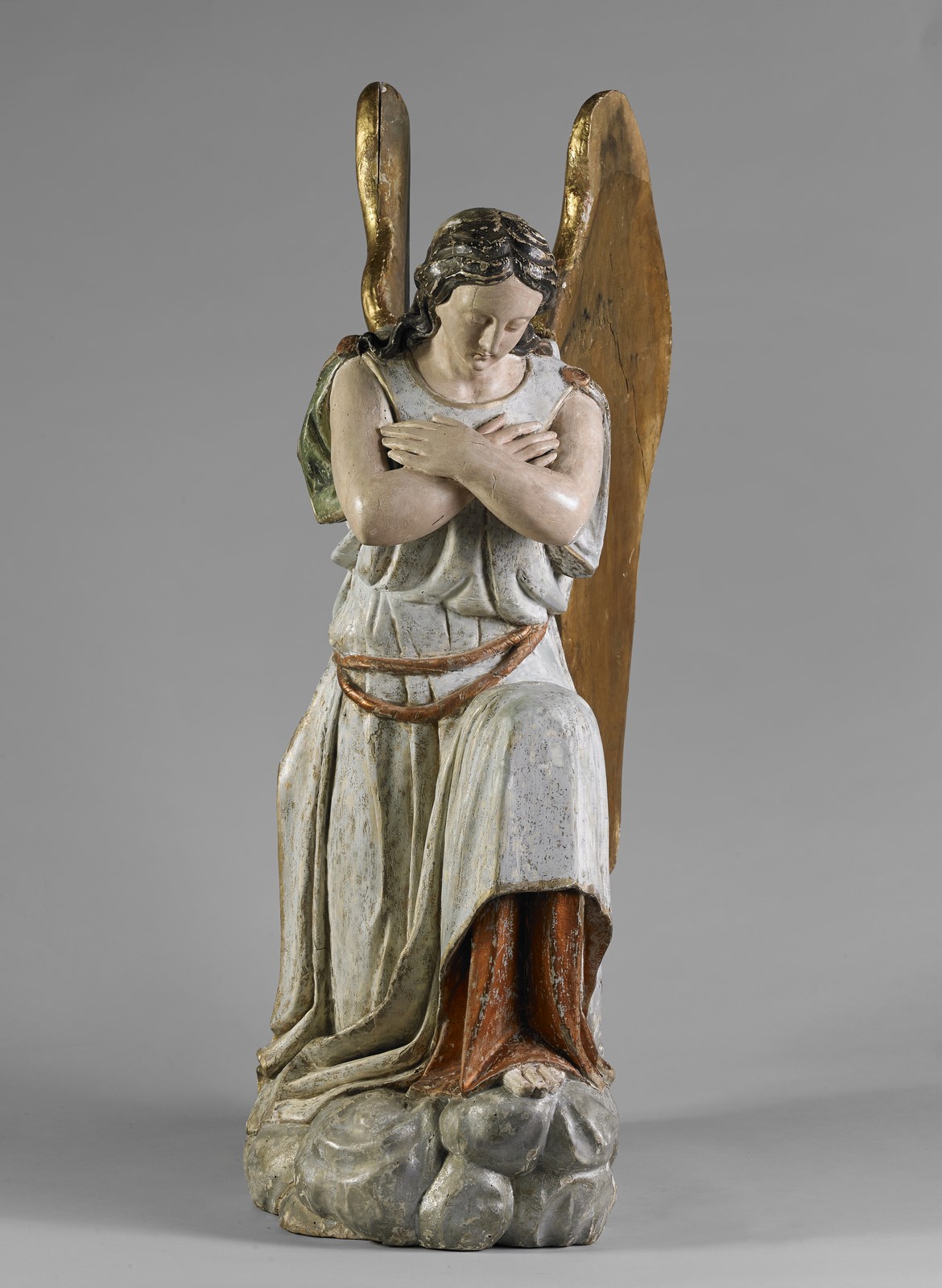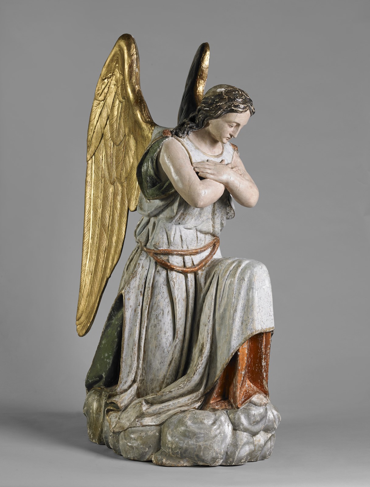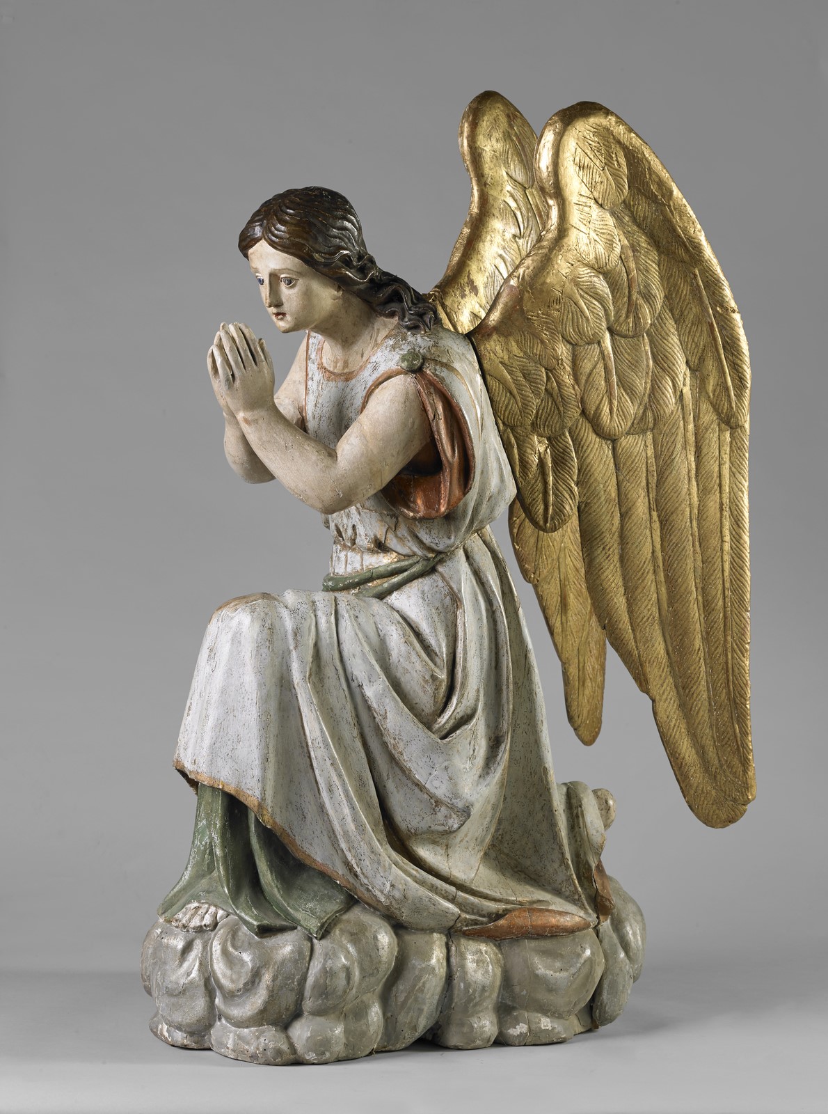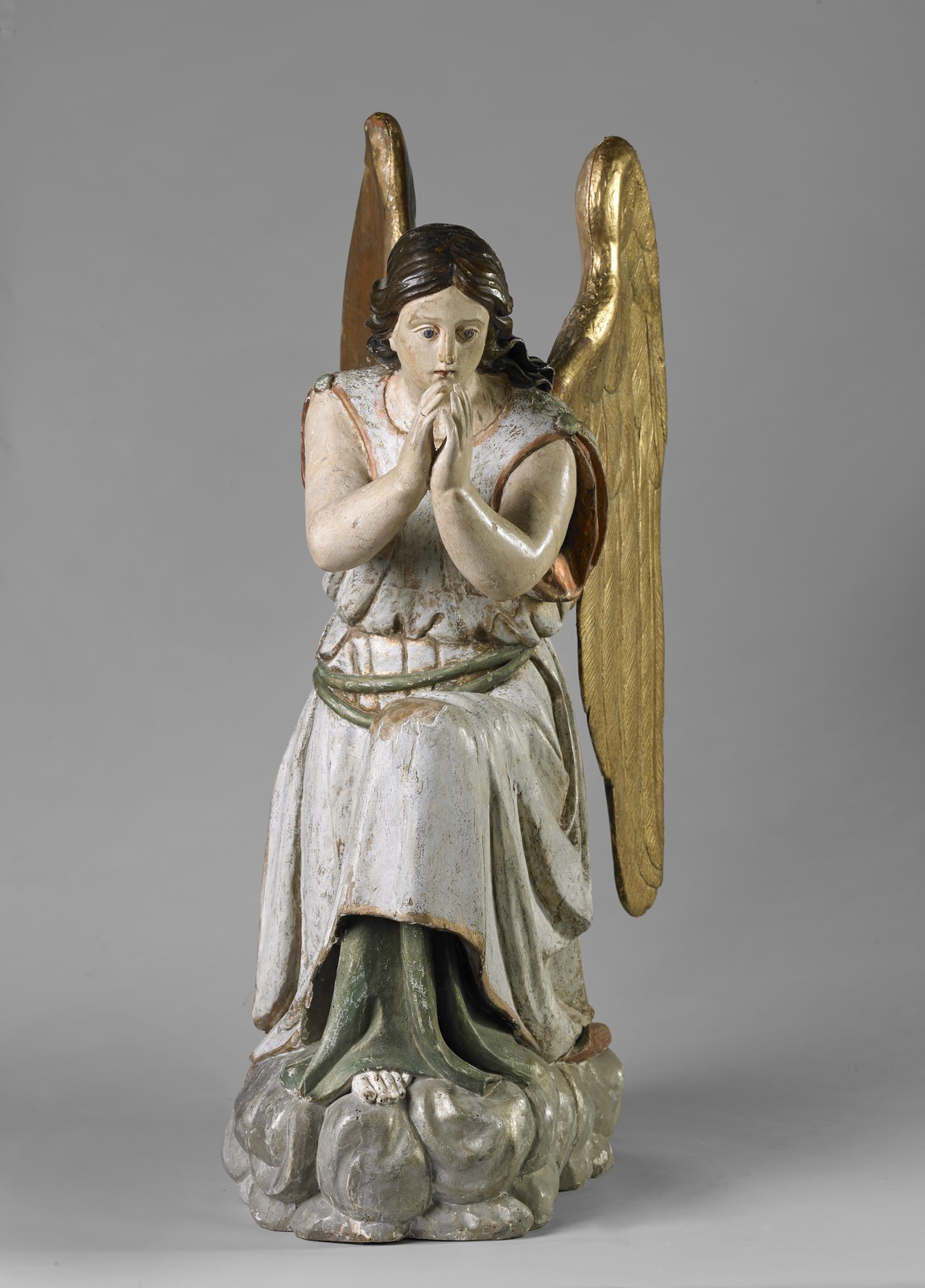 MANIFATTURA DEL XVII SECOLO Coppia di angeli in legno scolpito e dipinto. . ....