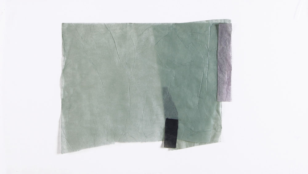 SANDRO DE ALEXANDRIS Torino 31/12/1939 Interno, 1990 acquerello e collage su cartoncino cm. 35x61, firma, titolo, anno, timbro ed etichetta della Galleria Valente Arte Contemporanea al retro, entro teca in plexiglass.