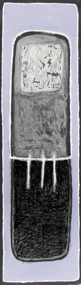 ANTONIO MARCHETTI LAMERA Torre Pallavicina (Bg) 1964  Genesi, 1988 tecnica mista su tela cm. 120x35, firma, titolo, anno e tecnica al retro, timbro e firma per autenticità e provenienza della Galleria Allegrini (BS) su foto.