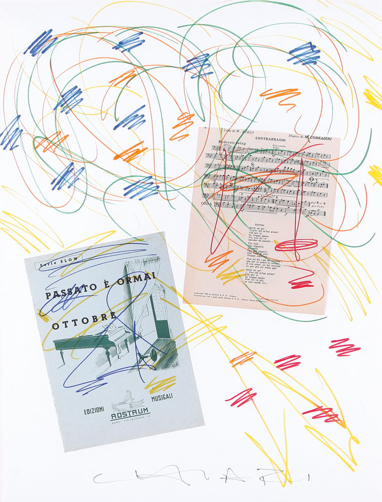 GIUSEPPE CHIARI Firenze 26/09/1926 - Firenze 10/05/2007 Passato è ormai tecnica mista e collage su carta cm. 65x50, firma in basso al centro, dichiarazione d'autenticità dell'artista su foto.