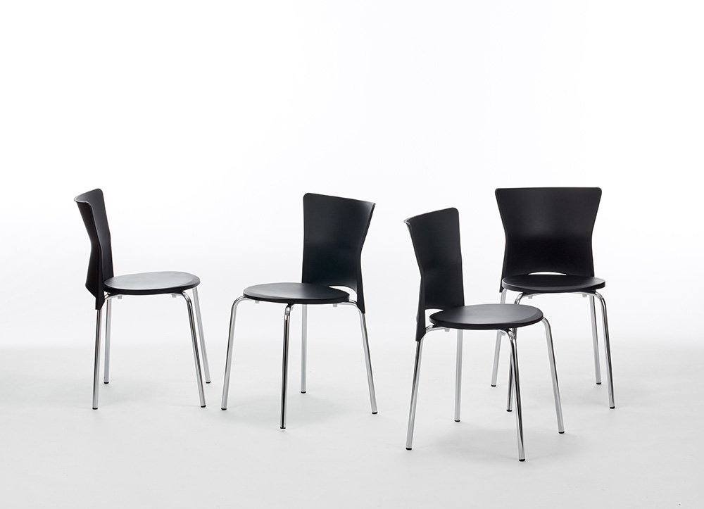 Lot of four chairs model "Isis". Produced by Sintesi, Italy, recent production. Black steel and polypropylene. (41x78x46 cm.)