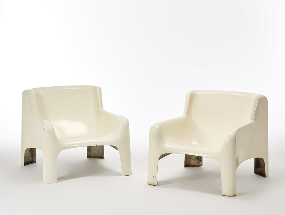 Lot consisting of two chairs model "Gaia". Produced by Arflex, 1967. Fiberglass. (77x68x78 cm.) (defects)