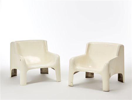 Lotto composto da due sedie modello "Gaia". Produzione Arflex, 1967. Vetroresina. (cm 77x68x78) (difetti)