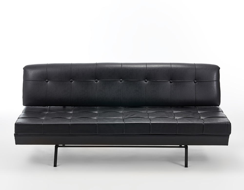 Sofa bed with imitation leather covering and black painted steel structure. Italy, 1960s. (191x84x80 cm.) (slight defects and restoration)