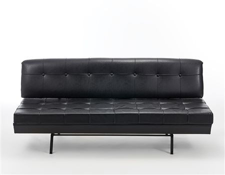 Divano letto con rivestimento in similpelle e struttura in acciaio verniciato nero. Italia, anni '60. (cm 191x84x80) (lievi difetti e restauri)
