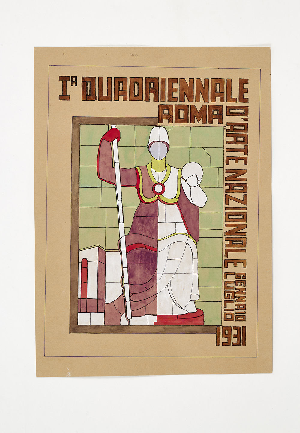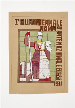 Bozzetto realizzato su disegno di Mario Romano dal Manifesto per la "I Quadriennale di Roma" per la vetrata esterna dell'edificio della Quadriennale di Roma del 1931; (cm 39x26,8)