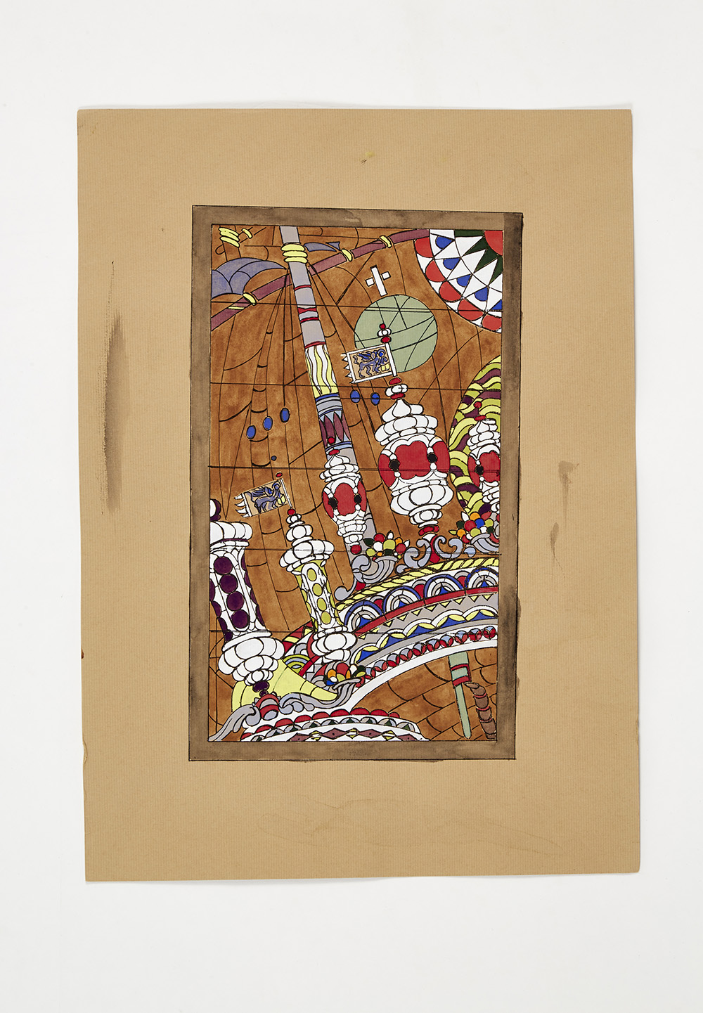 Sketch "Bragozzi chioggiotti " made to a design by Vittorio Zecchin for the stained glass window displayed at the 1926 Venice Biennale; (41.7x29.6 cm)