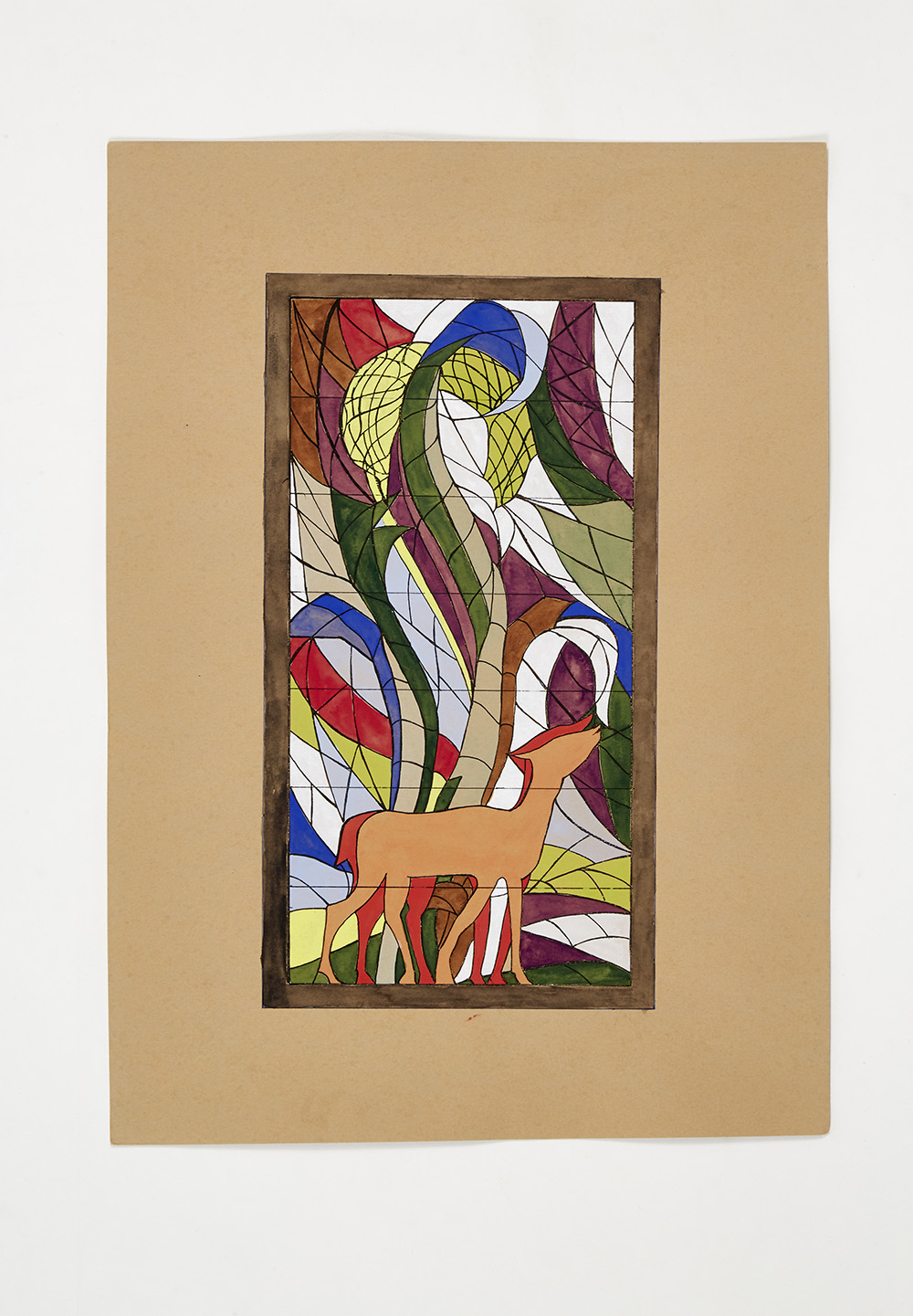 Bozzetto "I cerbiatti" realizzato su disegno di Ugo Ortona per la vetrata esposta alla Biennale di Monza del 1927; (cm 41,8x29,6)