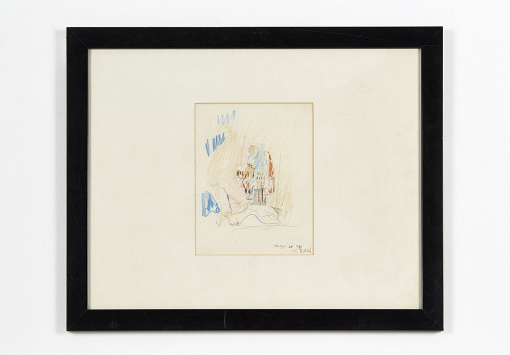 Lotto di quattro disegni di soggetto e ambientazione diversa recanti note manoscritte. Tecniche miste su carta. Tre disegni recano la firma "T. Buzzi" in basso a destra (cm 15x15; cm 20.5x16; cm 19x21.5; cm 22x27). In cornici con passepartout. (lievi difetti)