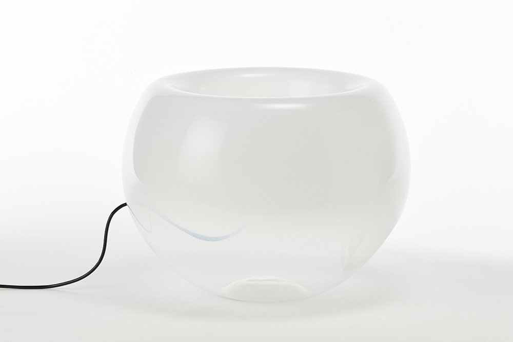 Lampada da appoggio modello "Vacuna". Produzione Artemide, Milano, 1968. Vetro soffiato e sfumato. (d cm 42)