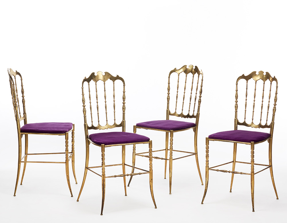 Lotto di quattro chiavarine in bronzo dorato con seduta rivestita in velluto...
