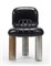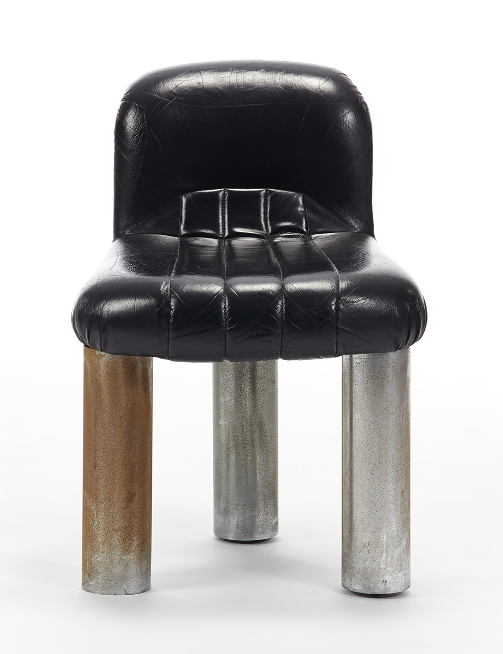 Sedia modello "Botolo". Produzione Arflex, Italia, 1973. Seduta e schienale rivestiti in simil pelle nera, gambe in ferro. (cm 50x75x52) (difetti e mancanze)