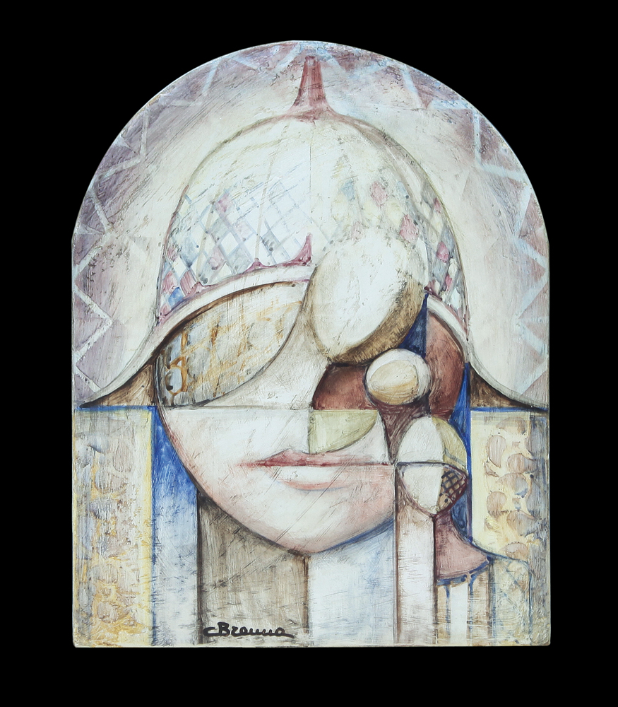 CARLO BRENNA Milano 11/02/1935  Per un istante siamo il respiro della vita affresco su tavola sagomata cm. 35x28, firma in basso a sinistra, titolo, firma ed etichetta dell'artista al retro.
