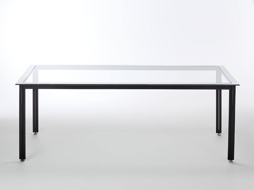 Table model "T10 Fasce Cromate". Produced by Azucena, Italy, 1950s. Structure in black lacquered metal and chromed feet. (200x71.5x100 cm.) (slight defects)