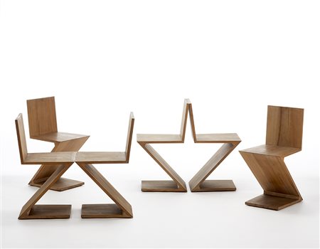 Gerrit Thomas Rietveld (Utrecht 1888 - Utrecht 1964)Lotto di sei sedie...