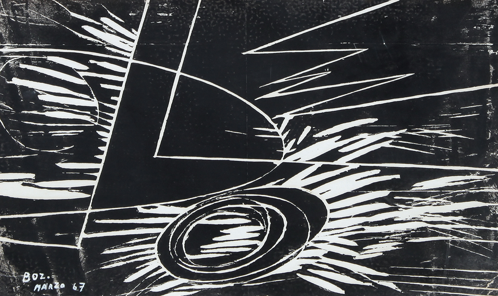 SILVANO BOZZOLINI Fiesole (FI) 03/11/1911 - Parigi 2004 Composizione, 1967 tecnica mista su carta cm. 29,5x49, sigla e anno in basso sinistra.