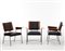 Lot of three armchairs in black painted metal rod, curved plywood and black fake leather covering. Italy, 1960s. (70.5x76.5x55 cm.) (slight defects and small restorations)
