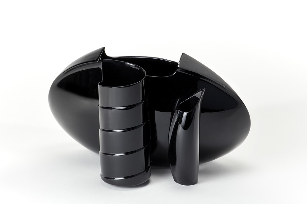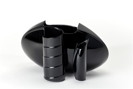 Scultura-prototipo ispirata alla produzione di Lino Sabattini. Germania, 1986. Ceramica smaltata in nero. (cm 44x26x28) (difetti)