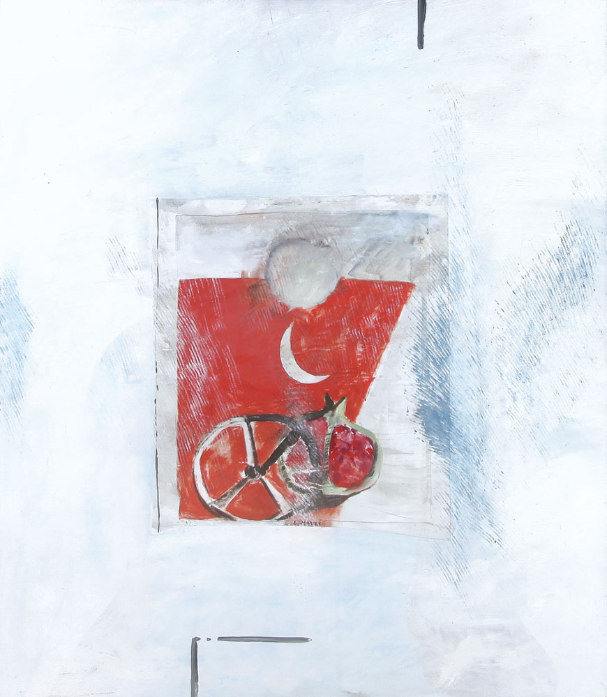ÈMILE MARZÈ Francia 1930 La Roue au cile rouge, 1971 olio su tela cm. 81x65, firma al centro, firma, titolo, anno ed etichetta della Galleria d'Arte Matuzia (Sanremo) al retro.