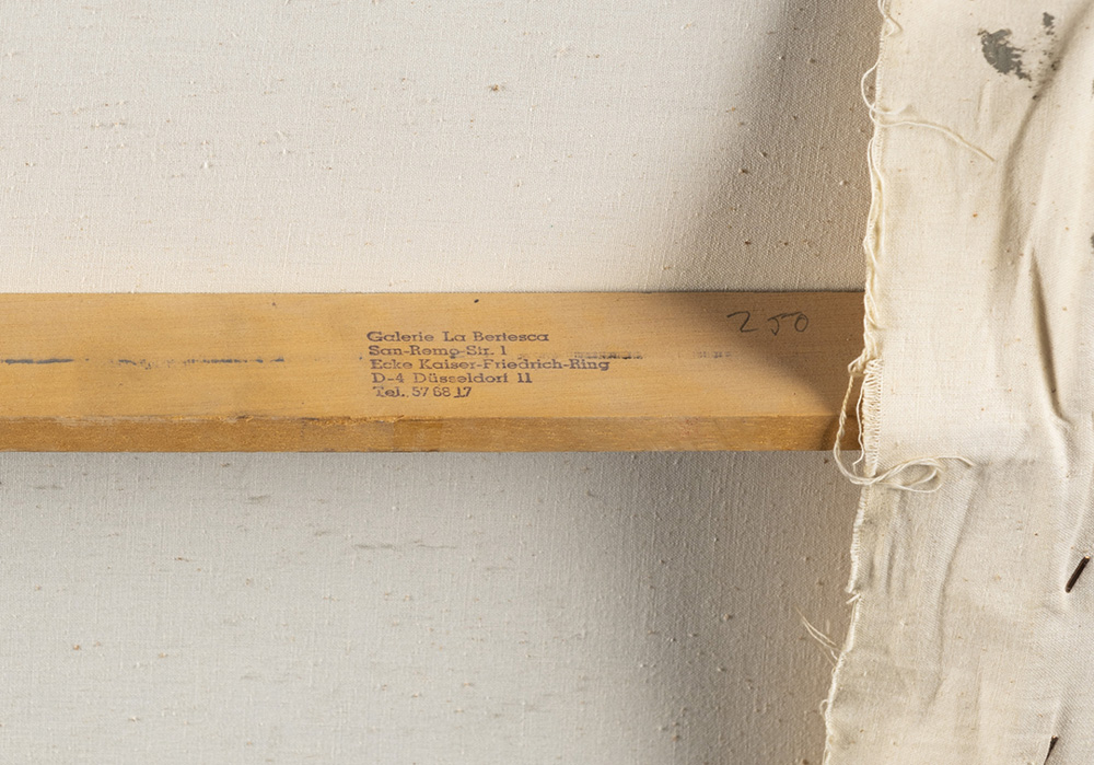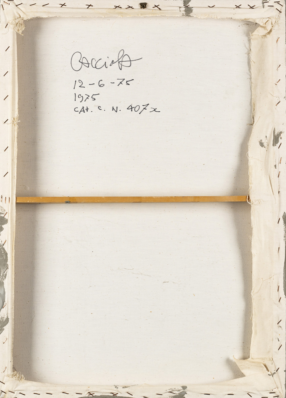 Enzo Cacciola 1945 12 - 6 - 75 - 1975 tecnica Cemento su tela Dimensioni cm. 70 x 50 Firma Firmato e datato sul retro Note Timbro Galerie La Bertesca, Dusseldorf sul retro Provenienza Collezione Privata
