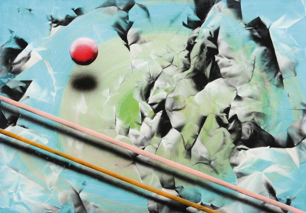 RENATO NATALE BALDASSARRE CHIESA Lecco 1947 Sfere, 2007 tecnica mista su tela cm. 35x50, firma al retro, dichiarazione d'autenticità dell'artista e archivio numero 70113 su foto.
