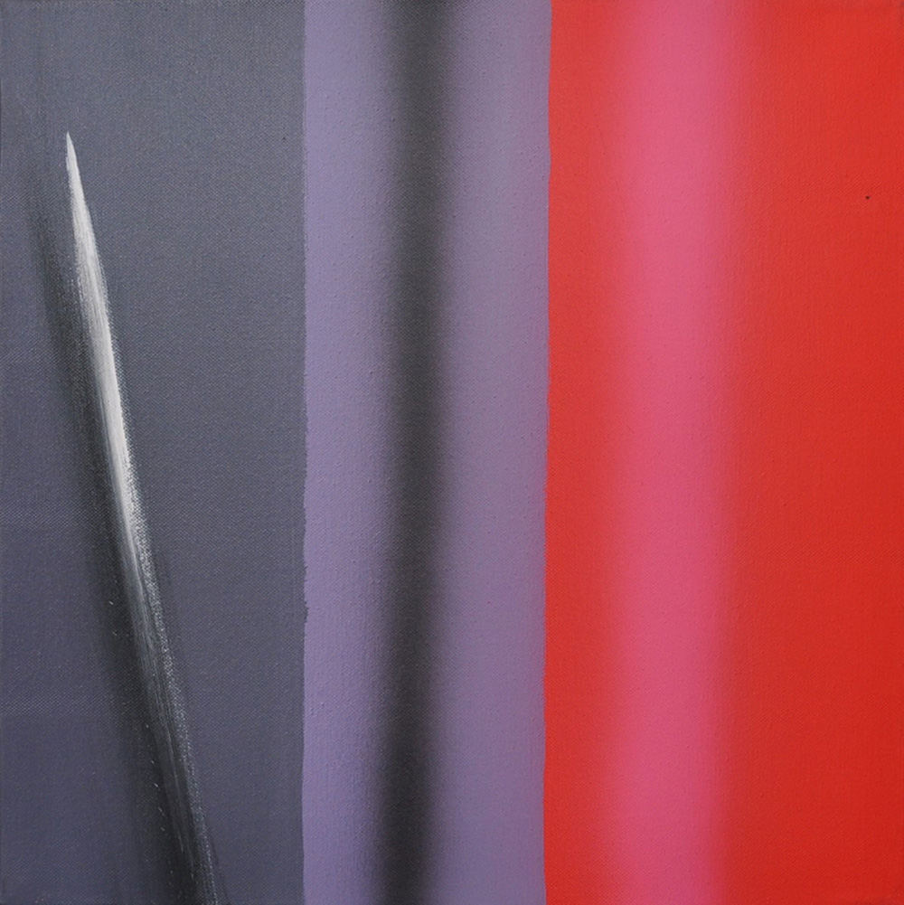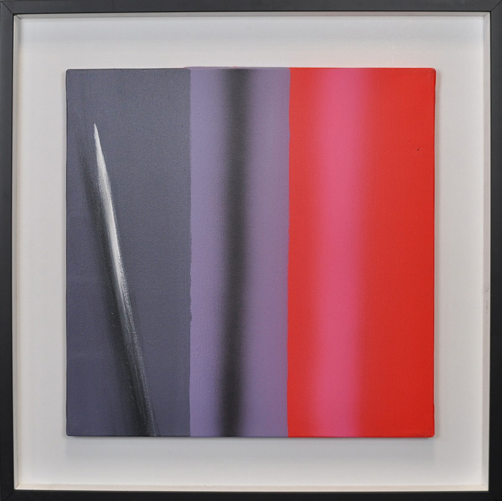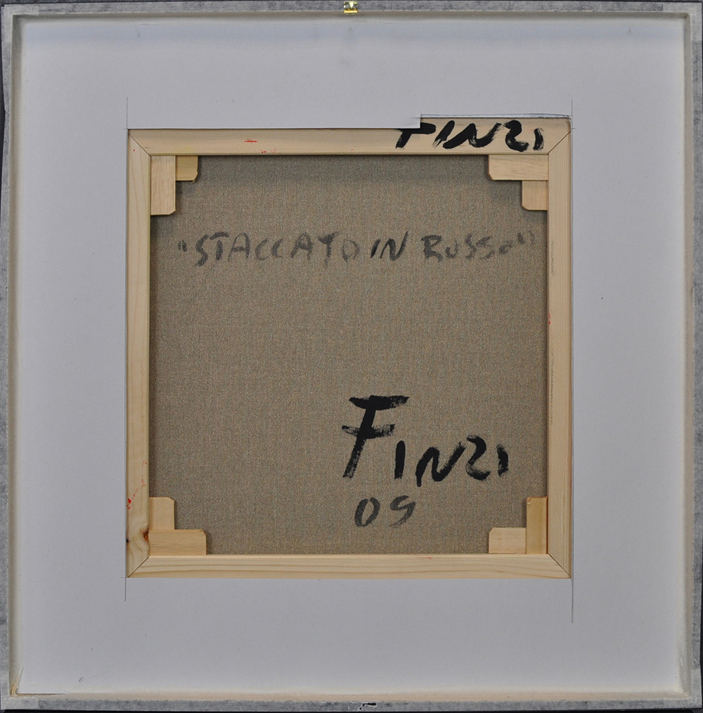 ENNIO FINZI Staccato in rosso Acrilico su tela Anno 2011 Dim. 40x40 Autentica su foto dell’artista Al verso data, titolo e firma
