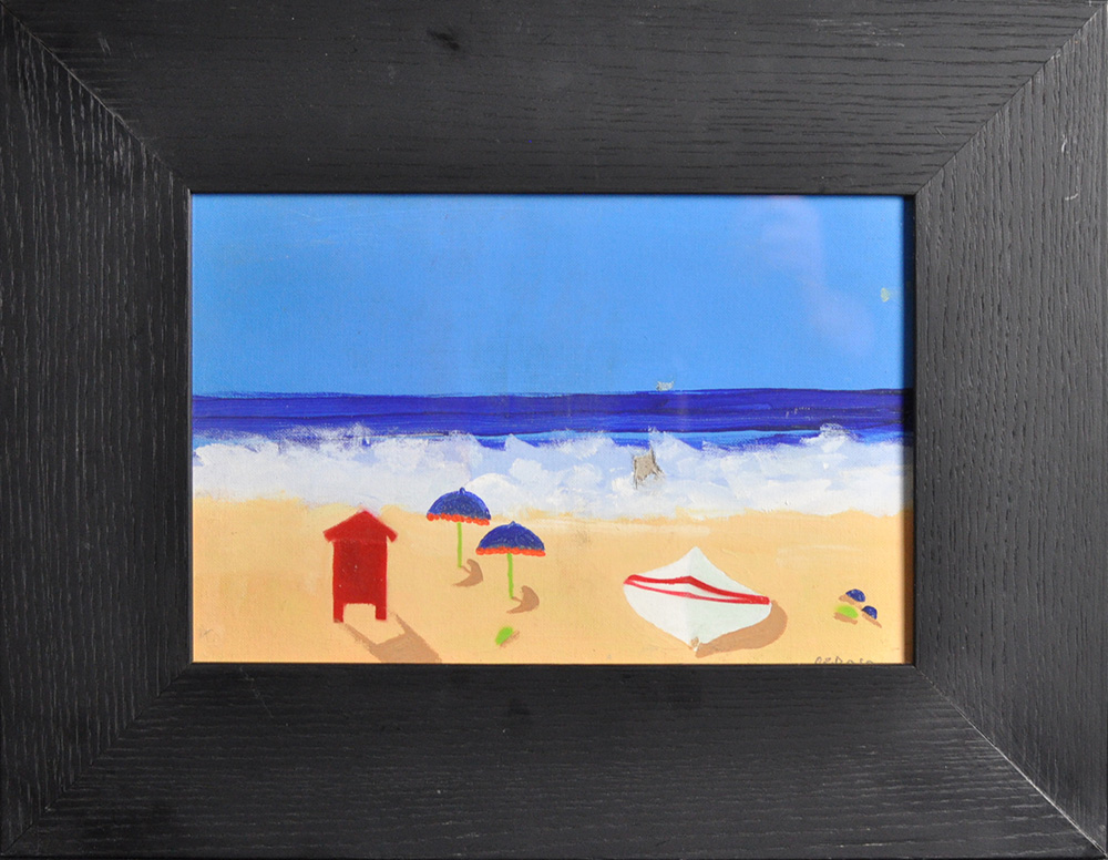 BRUNO CERASA Spiaggia Olio su cartone telato Anni 90 Dim. 20x30 Firmato in...