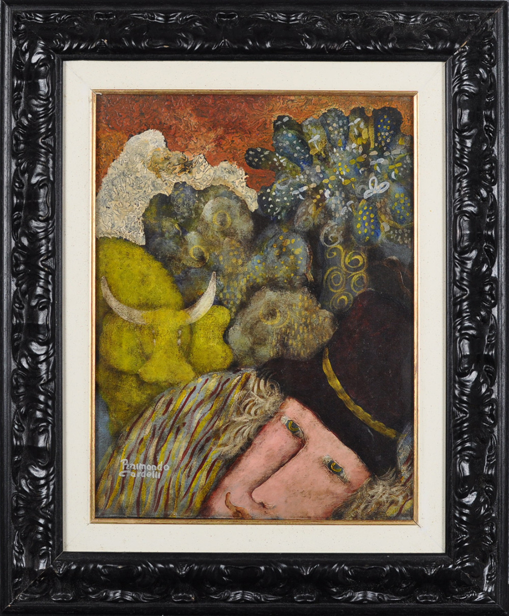 RAIMONDO CARDELLI Uno strano contadino Olio su tela Anni 80 Dim. 40x30 Firmato in basso a sx