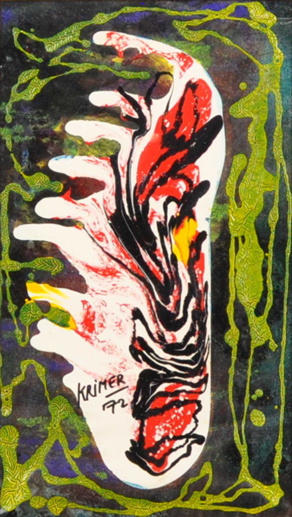KRIMER Fantasia colorata Tecnica mista Anno 1972 Dim. 27x16 Al verso dedica...
