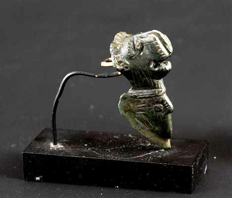 TESTA DI ERACLE DATAZIONE: I-II sec. d. C. MATERIA E TECNICA: bronzo fuso e cesellato Il semidio è raffigurato in modo singolare con una testa assai piccola e dai tratti assai semplificati, mentre la leontè sulla testa è la vera protagonista, assai più grande dell’eroe; la piccola scultura era destinata forse a decorare l’angolo di un cofanetto, dato il taglio triangolare PRODUZIONE: cultura egizio romana STATO DI CONSERVAZIONE: integra DIMENSIONI: alt. cm 5 PROVENIENZA: Vico, Galeria de Arquelogia, Madrid, 2013 Il lotto, in base alla legge italiana, non è esportabile / This lot, according to Italian law, can not be exported