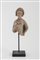 STATUETTA FEMMINILE DATAZIONE: I sec. d. C. MATERIA E TECNICA: argilla figulina rosata, modellata a stampo con ritocchi a stecca Figura femminile stante, con la testa lievemente volta a sinistra, con grande diadema lunato, orecchini circolari e collana con pendente rotondo; la donna è completamente avvolta nel mantello e tiene la mano destra sul torace mentre l’altro braccio steso lungo il fianco PRODUZIONE: cultura romana STATO DI CONSERVAZIONE: priva della parte inferiore DIMENSIONI: alt. cm 10,5 PROVENIENZA: Artemission Ancient Art, London, 2005 Il lotto, in base alla legge italiana, non è esportabile / This lot, according to Italian law, can not be exported