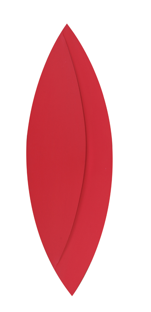 GIUSEPPE AMADIO Todi 19/05/1944 CANBO tela estroflessa rossa sagomata cm. 120x39, firma e titolo al retro, dichiarazione d'autenticità dell'artista su foto, opera senza cornice.