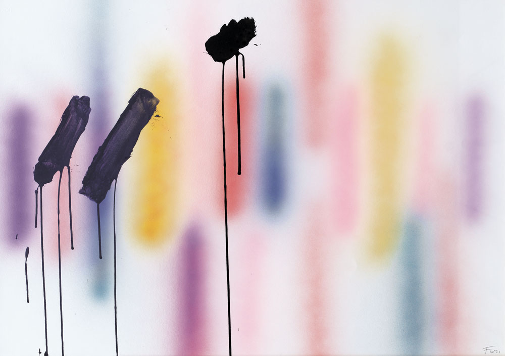 ENNIO FINZI Venezia 1931 Senza titolo, anni '80 acrilico su carta cm. 70x100, firma in basso a destra, dichiarazione d'autenticità dell'artista e Archivio Ennio Finzi su foto.