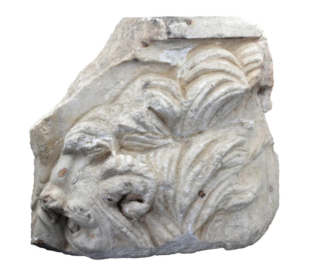LEONE DATAZIONE: III sec. d.C. MATERIA E TECNICA: marmo bianco italico a grana media, scolpito, levigato e rifinito a trapano Frammento pertinente alla cassa di un sarcofago ellittico in cui era rappresentato un leone nel punto di curvatura; l’animale è visto di profilo e volto a destra con la criniera resa a lunghe ciocche sovrapposte e la bocca semiaperta PRODUZIONE: cultura romana imperiale STATO DI CONSERVAZIONE: scheggiature diffuse DIMENSIONI: alt. cm 30; lung. cm 40 CFR: L’età dell’angoscia. Da Commodo a Diocleziano, 180-305 d.C. Roma 2015 Il lotto, in base alla legge italiana, non è esportabile / This lot, according to Italian law, can not be exported
