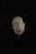 TESTA BARBATA DATAZIONE: XIII-XIV sec. d. C. MATERIA E TECNICA: marmo bianco italico a grana media, scolpito, levigato e rifinito a trapano Piccola testa maschile volta leggermente a sinistra raffigurante un uomo anziano con i capelli fermati da una tenia e ricadenti in ampie ciocche che si confondono con la barba fluente che incornicia il volto; gli occhi sono molto allungati, il naso schiacciato e gli zigomi pronunciati, le labbra semiaperte a conferire un’espressione patetica. La piccola testa era verosimilmente parte di un altorilievo, Completo di base quadrangolare in legno nero. PRODUZIONE: cultura romanico-gotica STATO DI CONSERVAZIONE: integra DIMENSIONI: alt. complessiva cm 34, testa alt. cm 19