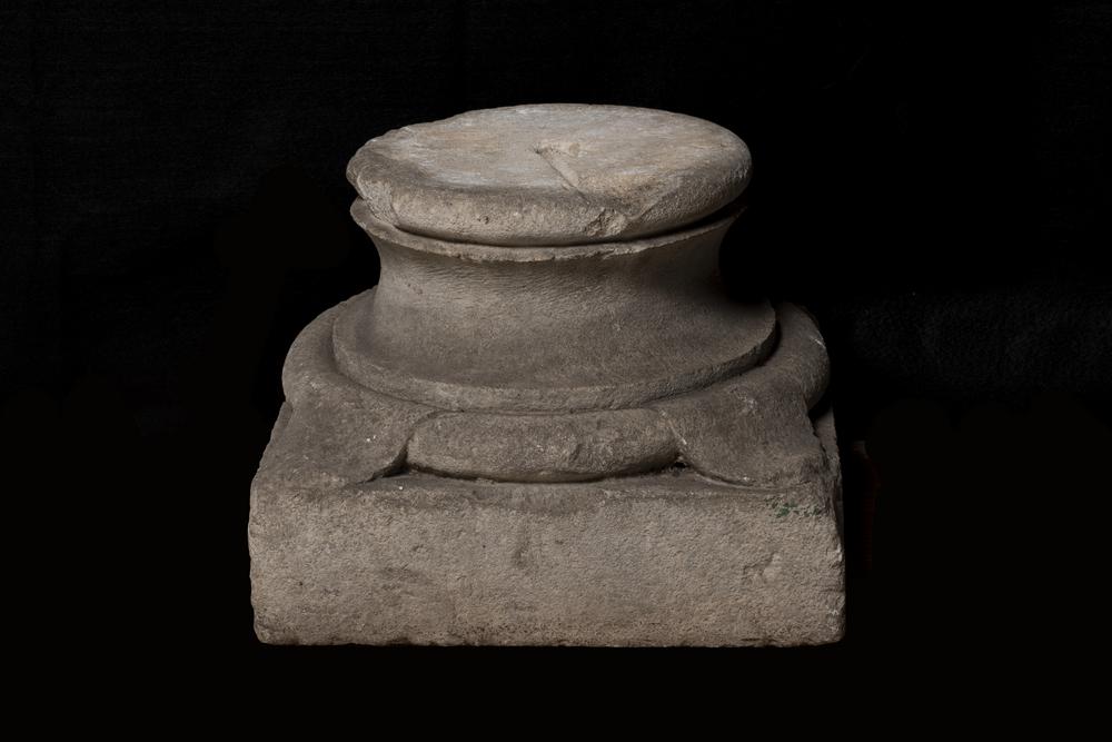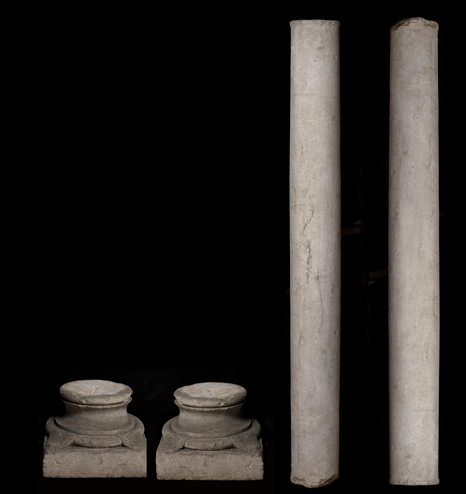 COPPIA DI COLONNE DATAZIONE: XIV sec. d. C MATERIA E TECNICA: calcare bianco scolpito Coppia di colonne in calcare bianco con fusti circolari lisci, leggermente rastremati alla sommità, complete di basi circolari su dadi quadrangolari STATO DI CONSERVAZIONE: integre, lievi scheggiature DIMENSIONI: alt. cm 185; diam. cm 20; basi cm 34x34x26