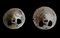 Due grandi borchie circolari modellate come una testa di leone con le fauci spalancate e la criniera realisticamente realizzata mediante sottili incisioni, probabilmente parti di maniglie di porta o cassa