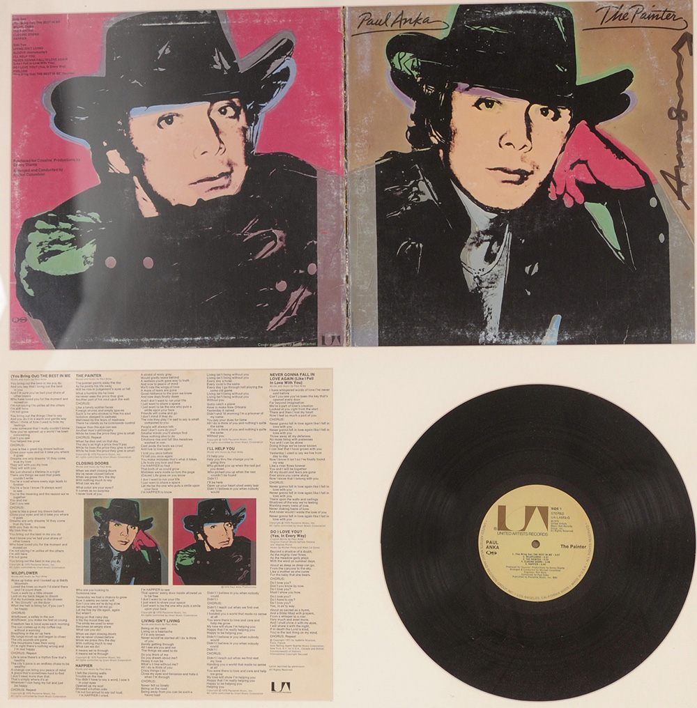 Andy Warhol Pittsburgh 1928 New York 1987 “Andy Warhol, Paul Anka: The Painter” Copertina con firma originale e disco United Artists Records Anno 1976 cm 31x31